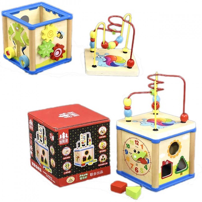 Размеры упаковки: 17х17х17 см Состав: дерево, металл, пластик Упаковка: коробка Комплектация: куб, фигурки сортера Страна-производитель: Китай Логическая игрушка-куб объединяет в себе сразу несколько игровых функций, которые будет интересны ребенку. Верхняя грань выполнена в виде лабиринта с изогнутыми металлическими проволочками и цветными шариками, также есть сторона с часиками для обучения самостоятельному определению времени, другие грани представлены в виде сортера, подвижных шестеренок и грани с заданной траекторией перемещения фигурок. Логический куб будет способствовать развитию мышления ребенка, его мелкой моторики, сообразительности и поможет получить при помощи взрослых знания, необходимые в повседневной жизни. Изделие изготовлено из качественных нетоксичных материалов. Цвета представлены в ассортименте.