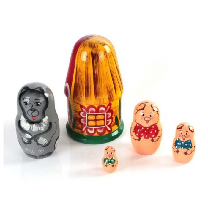 Деревянная матрешка Три поросенка 5 шт. Р-45/932