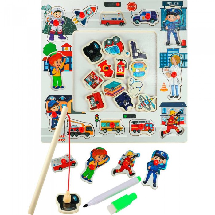 Размер упаковки: 30,3 х 1 х 30,3 см Размер изделия: 30 х 1 х 30 см Функционал: деревянные игрушки, рамка - вкладыш Вид упаковки: пленка Страна производитель: Россия Материал: дерево, металл, пластик Комплектация: основание - 1 шт, маркер - 1 шт, игровые элементы - 24 шт, игровая палочка с магнитом - 1 шт Возраст ребенка: для детей от 3 лет Рамка-пазл магнитная с рыбалкой и маркером придется по душе всем малышам! Особенности: - игра - головоломка - составление картинок из подходящим элементов - игровая палочка с магнитом для игры в рыбалку - магнитно-маркерная доска на которой можно писать специальным маркером - в комплекте маркер с губкой для стирания - качественные и безопасные материалы Игра - головоломка поспособствует развитию: - цветового восприятия - логического мышления - мелкой моторики