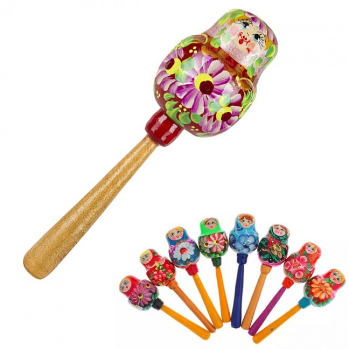 Деревянная погремушка на палке Девочка
