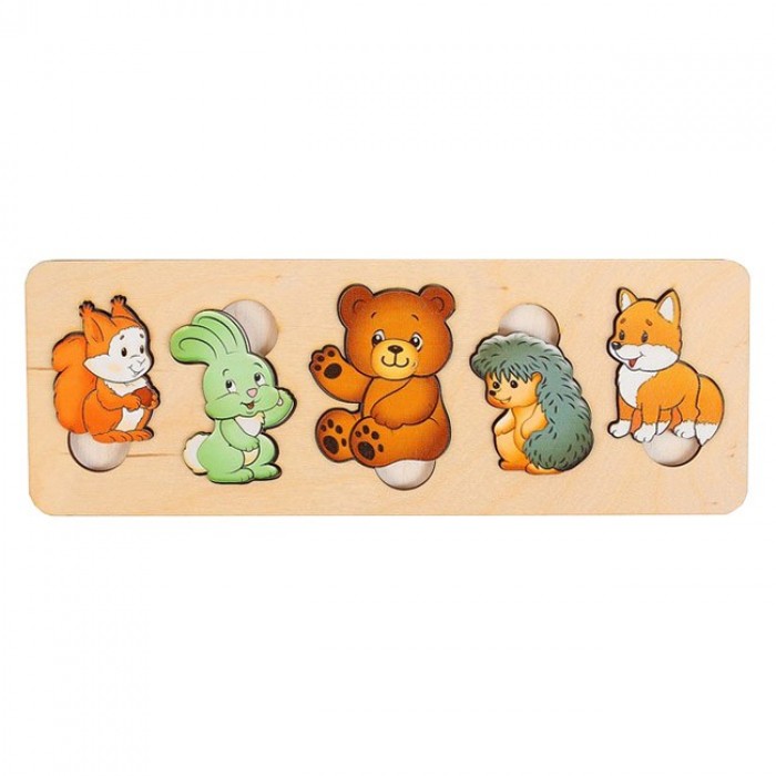 Комплектация: рамка, вставные элементы Материал: дерево Размер упаковки: 22*6*1 см. Функционал: сборная картинка Возраст: от 1 года Упаковка: пленка термоусадочная Страна происхождения бренда: Россия Деревянный пазл основан на принципе рамок и вкладышей. Малышу необходимо разместить красочные фигурки в соответствующую по размеру рамочку. В процессе занимательной игры ребенок познакомится с понятиями цвета и размера. Цветные элементы достаточно крупные. Многообразие форм вырубки и различные размеры отдельных элементов способствуют развитию мелкой моторики у малышей. Сделанные из высококачественной древесины, они не деформируются и легко берутся в руки. Сборка головоломки способствует развитию внимания, логического мышления, усидчивости и подарит массу положительных эмоций. Все детали данной игры изготовлены из экологически чистых материалов.