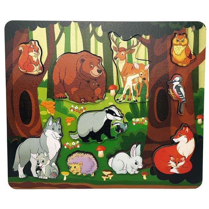 Деревянная Рамка вкладыш Кто живет в лесу? 10 деталей 8410