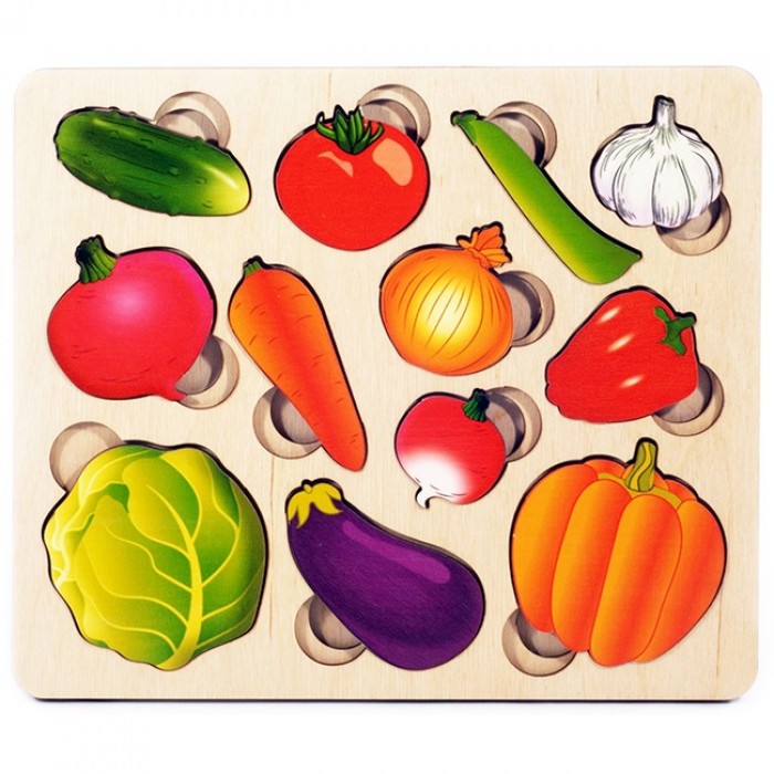 Размеры изделия: 24,5х20,5х1 см Состав: дерево Комплектация: рамка - 1 шт., вкладные элементы - 24 шт. Упаковка: пленка Страна-производитель: Россия Развивающая доска "Овощи" - это полезная и увлекательная игра для малышей. Ее особенностью является то, что вкладные элементы - двойные, одна часть представляет собой целый овощ, а вторая - его отрезанную часть. Рассматривая вкладыши. ребенок будет изучать название овощей, узнает об их пользе для организма, а еще познакомится с таким важным понятием, как "часть-целое", увидит, как устроены разные овощи внутри. Такая игра поможет малышу развить мелкую моторику, получить новые знания об окружающем мире, потренировать логическое мышление и сообразительность. Все элементы изделия выполнены из экологически чистого материала - дерева, хорошо отшлифованы и окрашены безопасными нетоксичными красками.