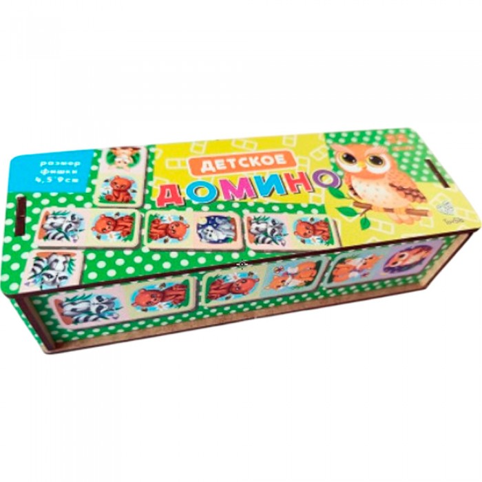 Размер упаковки: 19,6 х 7 х 5,2 см Размер изделия: 9 х 4,5 х 0,3 см Функционал: настольная игра Упаковка: деревянная коробка Страна обладатель бренда: Россия Материал: фанера Комплектация: фишка - 28 шт. Возраст ребенка: от 3 лет Настольная игра позволит весело и интересно провести совместный досуг с друзьями и в кругу семьи. Особенности: - натуральный материал; - цветная печать; - удобная форма. Домино — это веселая настольная игра для дружной компании. Правила игры: - игра состоит из карточек; - на лицевую сторону нанесено изображение; - задача — разместить карточки по принципу домино, подобрав одинаковых животных; - если в руках у игрока нет подходящей фишки, он берет дополнительные до тех пор, пока не попадется нужная; - выигрывает тот, кто первым выложит все свои фишки. Настольная игра направлена: - на развитие логического мышления, коммуникативных навыков, умения манипулировать мелкими предметами; - тренировку памяти, образного мышления, визуального восприятия.