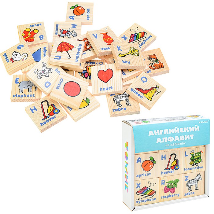 Деревянные Кубики 36шт Английский на магнитах МАГ03