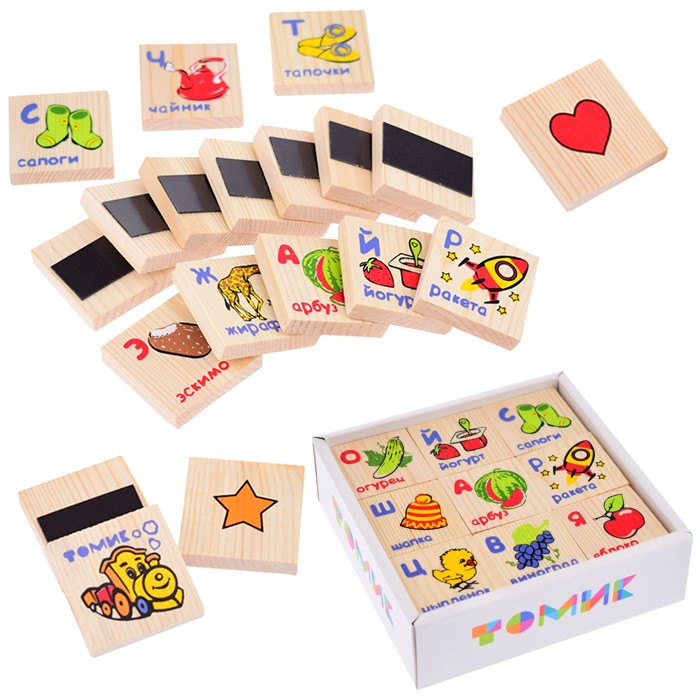 Деревянные Кубики 36шт Азбука на магнитах МАГ02