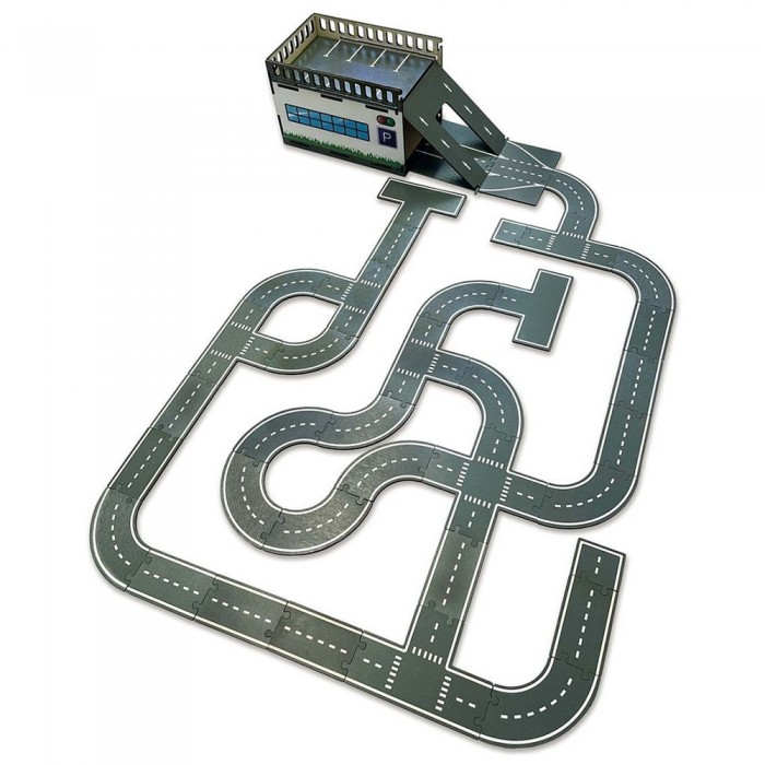 Размер упаковки: 18,8*28,4*19 см Размер изделия: ширина деталей дороги - 6 см, гараж - 18*28*18 см Вес: 1,9 кг Функционал: конструирование Упаковка: картонная коробка Страна обладатель бренда: Россия Материал: дерево Комплектация: прямая деталь – 11 шт, поворот – 14 шт, парковка – 2 шт, развилка – 5 шт, перекрёсток – 1 шт, подъезд – 1 шт, тупик – 3 шт, гараж с дверцей и спуском – 1 шт. Возраст ребенка: от 3 лет Все мальчишки интересуются техникой, поэтому Вы сделаете чудесный подарок маленькому любителю автомобилей, если преподнесете ему этот интересный набор. Этот набор разнообразит игры малыша и позволит создать ряд сюжетов для игр. Детали трека скрепляются по принципу пазла и позволяют собрать множество вариантов трассы. Варианты можно посмотреть по QR-коду на упаковке. Гараж закрывается дверкой. Проработанные детали придают ей реалистичность и делают процесс игры увлекательнее. Рисунок - качественная УФ-печать по дереву. Такой набор станет прекрасным подарком юному