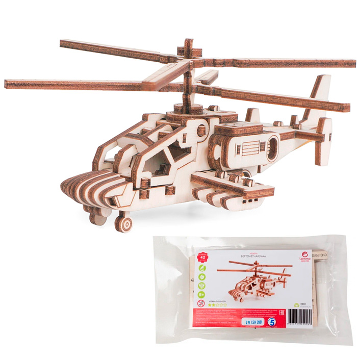 Деревянный Конструктор 3D Вертолет Акула 0151