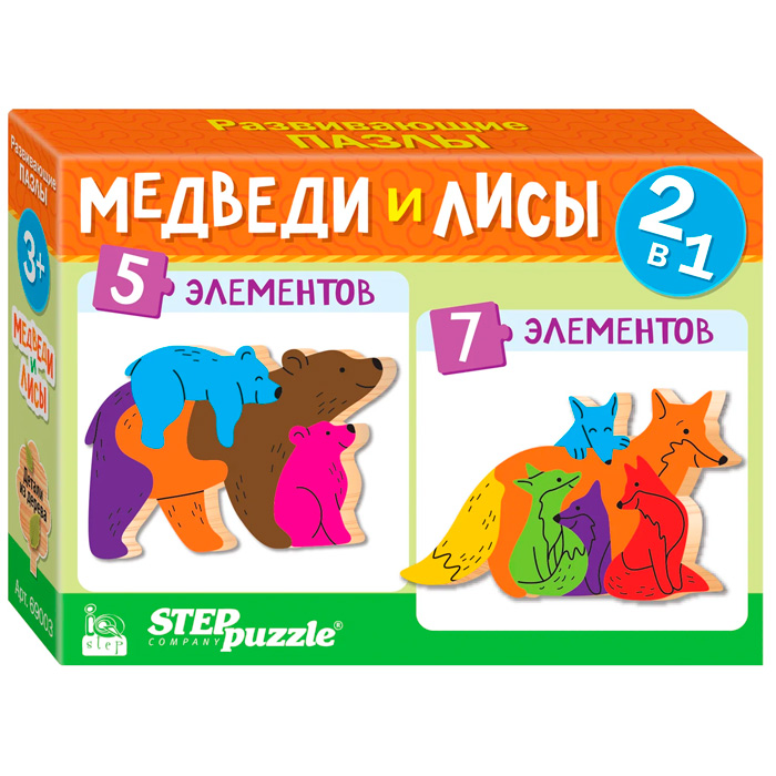 Деревянный пазл 2в1 Медведи и лисы IQ step 69003 Степ /44/