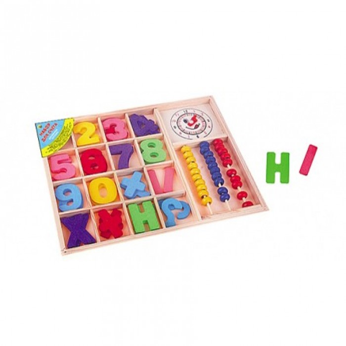 размер изделия: 1,5*19,5*24,5 см размер упаковки: 41,5*27,5*25,5 см материал: дерево состав набора: цифры, знаки, счеты