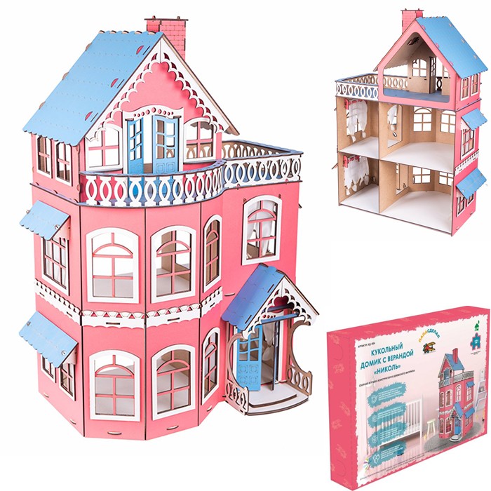 Размер упаковки: 6 х 30 х 46 см Тип упаковки: картонная коробка Страна производитель: Россия Материал: дерево Вес: 3 кг Возраст ребенка: от 3 лет Кукольный домик с верандой «Николь» станет замечательным подарком для каждой девочки! Стильный, игрушеченый коттедж гармонично впишется в детскую комнату. С таким домиком можно придумать много интресных и веселых игр. Характеристика: Размер домика: 70 х 50 х 30 см Высота первого этажа: 20 см Высота второго этажа: 20 см Высота третьего этажа: 26 см Высота дверных проемов: 13,5 Особенности: - домик не займет много места в детской комнате; - внутри домика много места для игры с куклами; - высота кукол от 10 до 18 см; - конструктор легко и быстро, с использованием клея для крепления деталей (входит в комплект); - домик можно декорировать из цветной бумаги; - домик иготовлен из высококачественной древесины, окрашен краской на водной основе. Развивает: - внимательность; - усидчивость; - творческие навыки; - па
