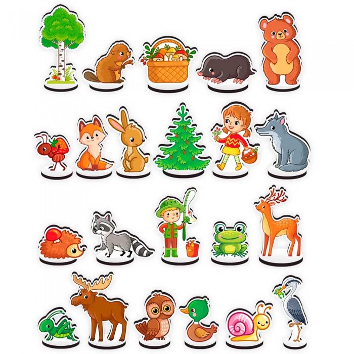 Размер упаковки: 19 х 14 х 4 см Вес: 280 г Функционал: настольная игра Упаковка: картонная коробка Страна обладатель бренда: Россия Материал: картон Комплектация: фигурка - 22 шт., подставка - 22 шт. Возраст ребенка: от 3 лет Детский набор деревянных фигурок - замечательный способ познакомить ребенка с многообразием животного мира и с особенностями жизни в лесу. Красочные элементы привлекут внимание ребенка. Особенности: - двусторонняя печать; - безопасные материалы; - красочный дизайн; - сборная конструкция. Настольная игра направлена на развитие: - логического мышления; - воображения; - логики; - умения манипулировать мелкими предметами.