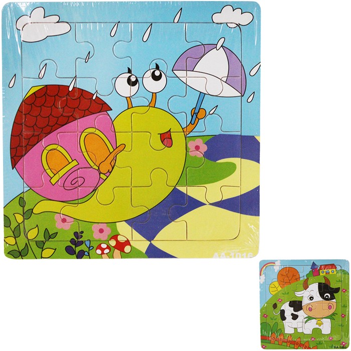 Размер упаковки: 15*15*0,5 см Функционал: пазл Упаковка: пленка Страна обладатель бренда: КНР Материал: дерево Комплектация: детали пазла 16 шт., основа с рамкой - 1 шт. Возраст ребенка: от 3 лет Деревянный пазл состоит из ярких красочных деталей, с помощью которых ребенок сможет собрать картинку. Подсказкой послужит основа с рамкой. Многообразие форм вырубки и различные размеры отдельных элементов способствуют развитию мелкой моторики у малышей. Сделанные из высококачественной древесины, они не деформируются и легко берутся в руки. Сборка головоломки способствует развитию внимания, логического мышления, усидчивости и подарит массу положительных эмоций. Все детали данной игры изготовлены из экологически чистых материалов.