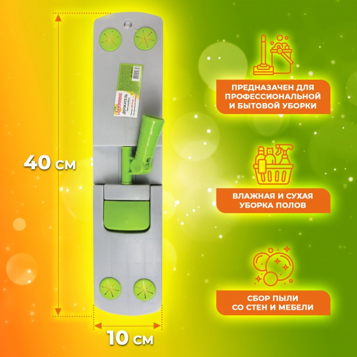 Держатель-флаундер ЛЮБАША предназначен для профессиональной и бытовой, влажной и сухой уборки полов, сбора пыли со стен и мебели.