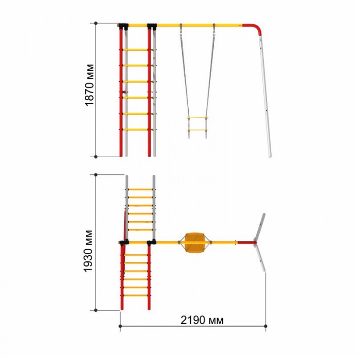 Дачный комплекс «Алфавит» легко монтируется на дачном участке. Классическая модель качелей, дополненная А-образной конструкцией из 2 металлических шведских стенок. Длина перекладины позволяет разместить любое дополнительное оборудование. В комплекте: 2 лестницы гимнастические, перекладина, качели.