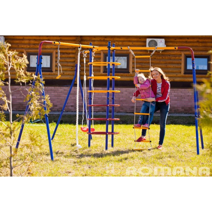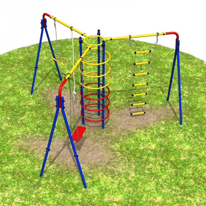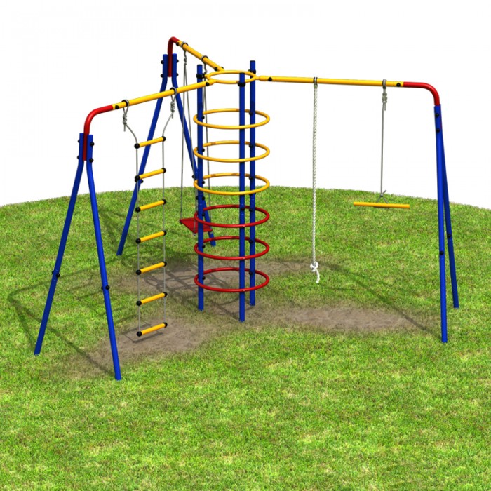 Циркус - детский спортивно-игровой комплекс для дачного спортивного уголка. Дает ребенку начальную физическую подготовку, помогает развить ловкость и гибкость. В комплекте: канат, трапеция, качели, лестница веревочная, кольцевой лаз. В разобранном виде состоит из двух упаковок.