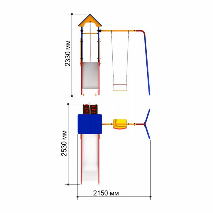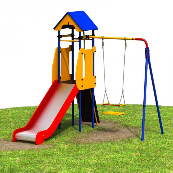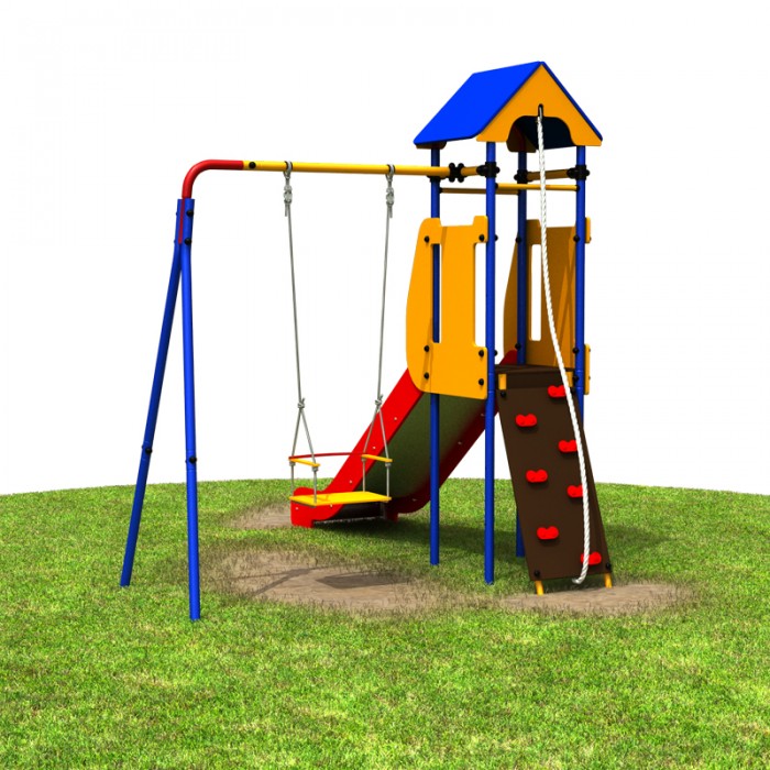 Дачный комплекс легко монтируется как в городском дворике, так и на дачном участке. Может разбираться для хранения в зимнее время года. В комплекте: качели со спинкой, щит для лазанья, горка, канат