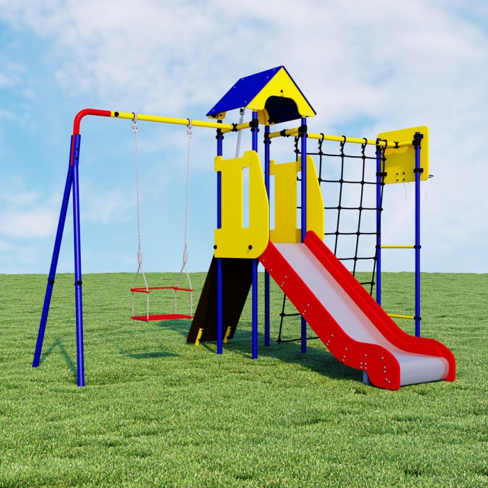 Дачный комплекс легко монтируется как в городском дворике, так и на дачном участке. Может разбираться для хранения в зимнее время года. В комплекте: щит баскетбольный, качели со спинкой, щит для лазанья, сетка для лазанья, горка.