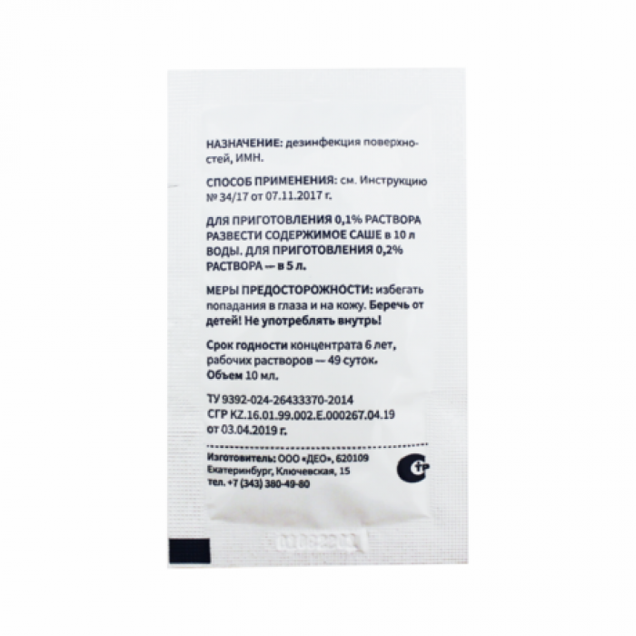 Дезинфицирующее средство на основе ЧАС и изопропанола "Део-бактер плюс" саше 10 мл/100 шт