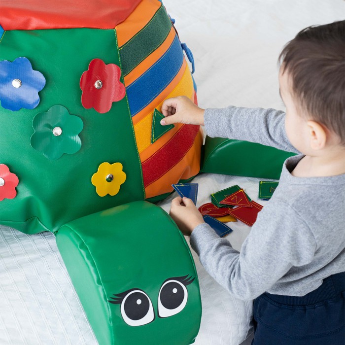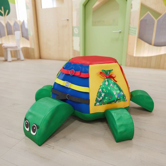 Дидактический модуль «Черепаха» - многофункциональная игрушка, которая поможет ребенку развить мелкую моторику, мышление и логику, а так же познакомит с формами, цветом, счетом. Габаритные размеры: 700 х 700 мм. Допустимая нагрузка 50 кг. Вес с упаковкой 3 кг