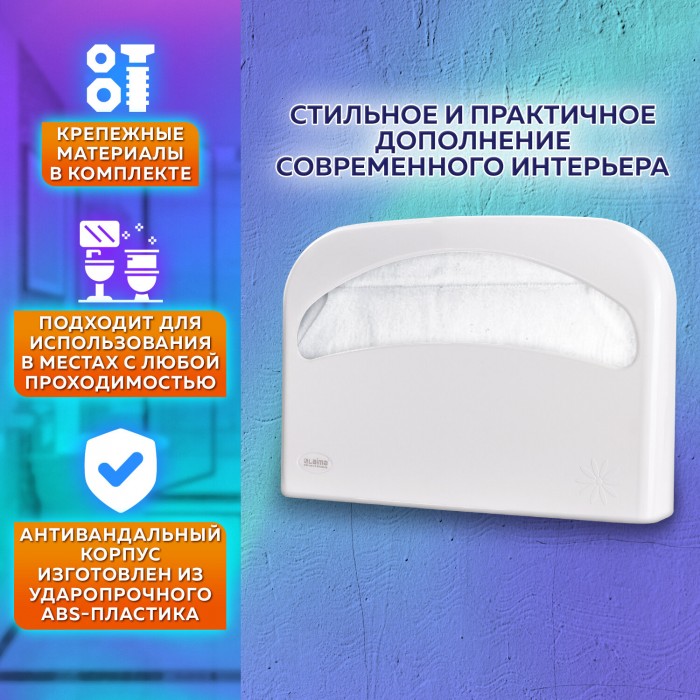 Диспенсер для покрытий на унитаз LAIMA PROFESSIONAL ORIGINAL (V1), 1/2 сложения, белый, ABS-пластик, 605785