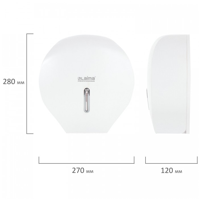 Диспенсер для туалетной бумаги LAIMA PROFESSIONAL подходит для использования в общественных местах с любой проходимостью, таких как туалетная комната в ресторане, офисе, торговом центре, аэропорту. Отличается высокими эксплуатационными характеристиками.