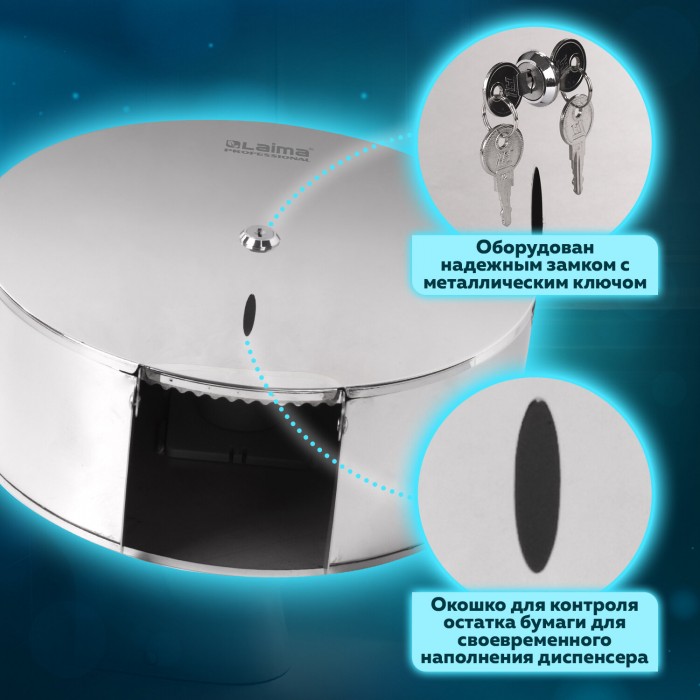 Диспенсер для туалетной бумаги LAIMA PROFESSIONAL INOX, (Система T1) БОЛЬШОЙ, нержавеющая сталь, зеркальный, 605701