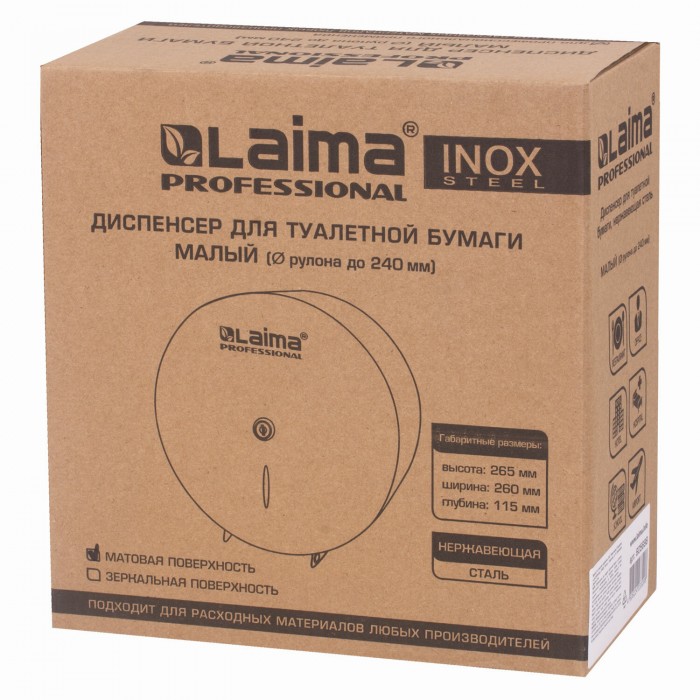 Диспенсер для туалетной бумаги LAIMA PROFESSIONAL INOX, (Система T2) малый, нержавеющая сталь, матовый, 605698