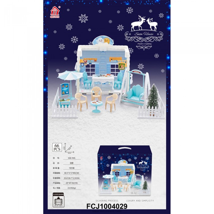 Размер упаковки: 35,6 х 12,9 х 28,7 см Размер изделия: 28 х 38 х 26 см Функционал: аксессуары для кукол, кукольный домик Вид упаковки: картонная коробка Страна производитель: КНР Материал: пластик Комплектация: кукольный дом в сборке - 1 шт, набор мебели - 12 шт, игровые аксессуары - 13 шт, инструкция - 1 шт Возраст ребенка: для детей от 3 лет Большой яркий дом с набором мебели станет чудесным подарком для девочки. Особенности: - в коробке 66 сборных деталей - игровые аксессуары в комплекте - качественные материалы - необходимы 3 батареи ААА 1.5V (не входят в комплект) - световые и звуковые эффекты
