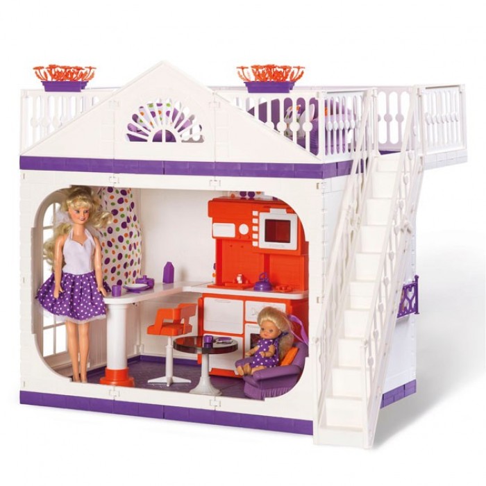 Размер упаковки (см): 36 х 15 х 27 Маленький кукольный домик с белой парадной лестницей - отличная идея для подарка маленькой принцессе. Дачный дом "Конфетти" совместим со всеми домами этой серии, Вы всегда сможете увеличить размер дома и собрать его на свой вкус. Домик можно легко перевозить в собранном виде в машине, высота игрушки 47 см.