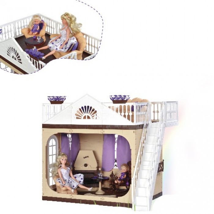 Размер упаковки (см): 36 х 15 х 27 Маленький кукольный домик с белой парадной лестницей - отличная идея для подарка маленькой принцессе. Дачный дом "Конфетти" совместим со всеми домами этой серии, Вы всегда сможете увеличить размер дома и собрать его на свой вкус. Домик можно легко перевозить в собранном виде в машине, высота игрушки 47 см.
