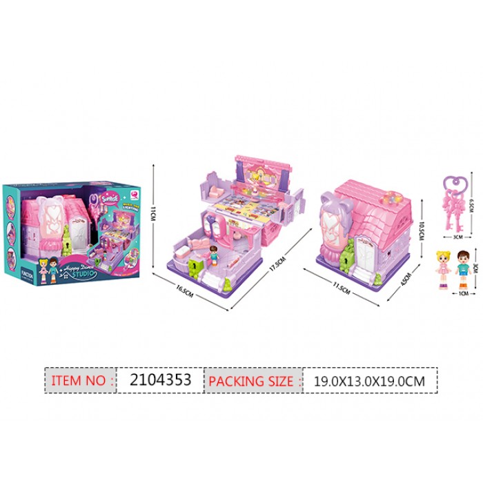 Размер упаковки: 19 х 13 х 19 см Размер изделия: домик сложенный 11,5 х 4,5 х 10,5 см, разложенный 17,5 х 16,5 х 11 см, кукла 1 х 3 см, ключ 6,5 3 см Функционал: кукольный домик, складной, с подсветкой Упаковка: картонная коробка блистерного типа Страна производитель: КНР Материал: пластик Комплектация: дом - 1 шт., кукла - 2 шт., ключ - 2 шт. Возраст ребенка: от 3 лет Кукольный дом с набором мебели станет чудесным подарком для девочки. Особенности: - складная конструкция; - имеется подсветка; - работает от батареек; - яркая расцветка; - безопасные материалы; - куклы и мебель в комплекте. С таким красочным набором девочка сможет придумать и разыграть множество увлекательных сюжетов. Поселить в домике можно куклу из набора или любые подходящие по размеру игрушки. Игры с куклами: - благотворно воздействуют на психоэмоциональное развитие; - развивают воображение; - помогают реализовывать различные модели поведения; - позволяют проигрывать жизненные ситуации.
