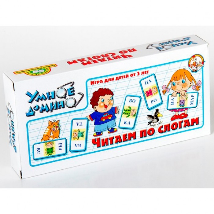 Размеры: 0.2x0.098x0.03 м Вес: 205 г. Рекомендуемый возраст: от 5 лет до 7 лет Это умное развивающее домино предназначено для детей старшего дошкольного и младшего школьного возраста, от 5 до 8 лет. Цель этой игры, прежде всего, научить детей правильно читать слоги, составлять из них слова, таким образом, получая начальные знания о составе слов. Умное домино Читаем по слогам В состав умного домино «Читаем по слогам» входят 36 карточек, каждая из них разделена на две части. На каждой половинке написан слог. Смысл этой игры заключается в том, чтобы в игровой форме, участники игры складывали слова. Например: первый игрок выложил карточку со слогами РАН и ДУ, второй игрок может выложить (одну или две) свои карточки, таким образом, чтобы из слогов получилось слово БАРАНКА. Крупные удобные фишки, размером 8 на 4 сантиметра, выполнены из качественной пластмассы, а цветные картинки и буквы приклеены по усовершенствованной технологии. Это домино готово к любым испытаниям и прослужит долго.