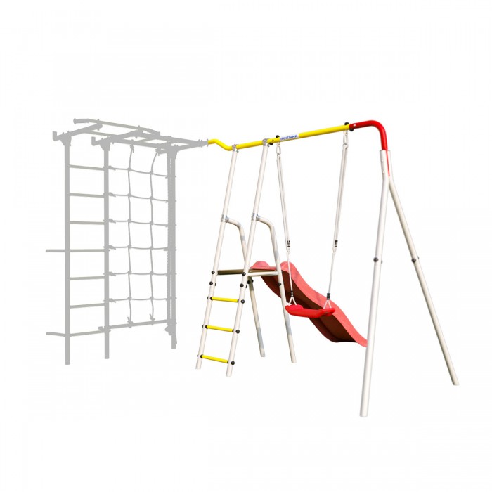 В комплект входит горка и стойка для крепления качелей. Качели можно выбрать из ассортимента ROMANA, в зависимости от возраста ребенка и индивидуальных предпочтений.