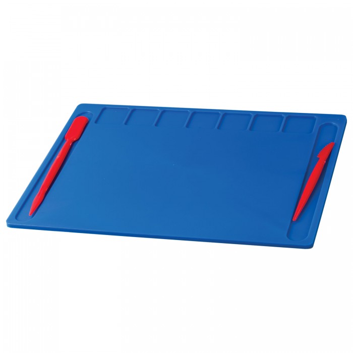 Доска для лепки А4, 280х200 мм, ЮНЛАНДИЯ, синяя, 7 отделений для пластилина, 2 стека, 227399