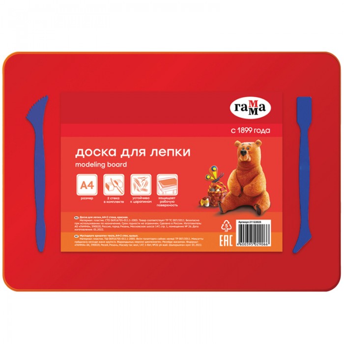Доска для лепки Гамма, А4+2 стека, пластик, красный