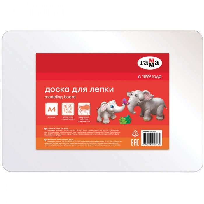 Доска для лепки Гамма, А4, пластик, белый