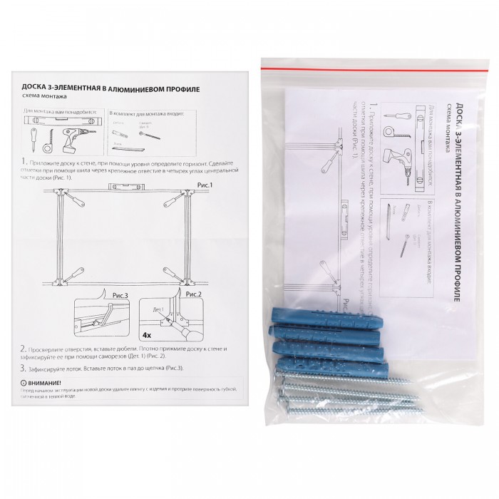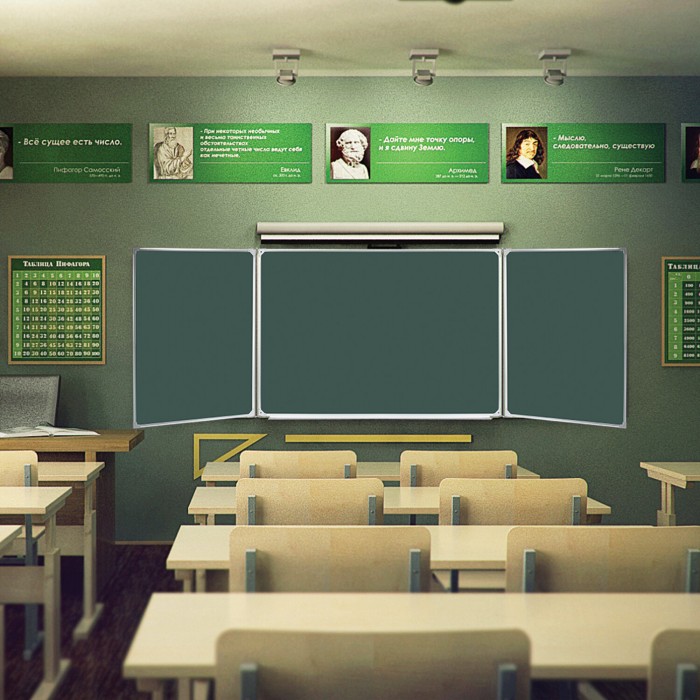 Трехэлементная настенная магнитно-меловая доска с антибликовым покрытием.