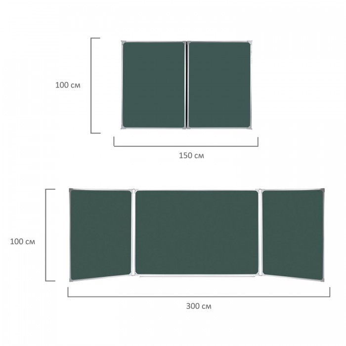 Доска для мела магнитная 3-х элементная 100х150/300 см, 5 рабочих поверхностей, зеленая, BS, ТЭ-300М