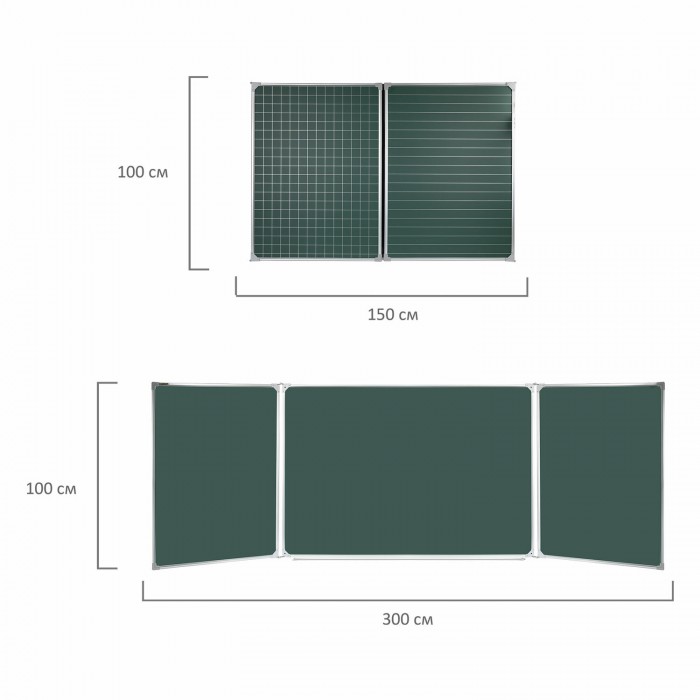 Доска для мела магнитная 3-х элементная 100х150/300 см, ДОПОЛНИТЕЛЬНАЯ ЛИНИЯ/КЛЕТКА, зеленая, BRAUBERG, 236972