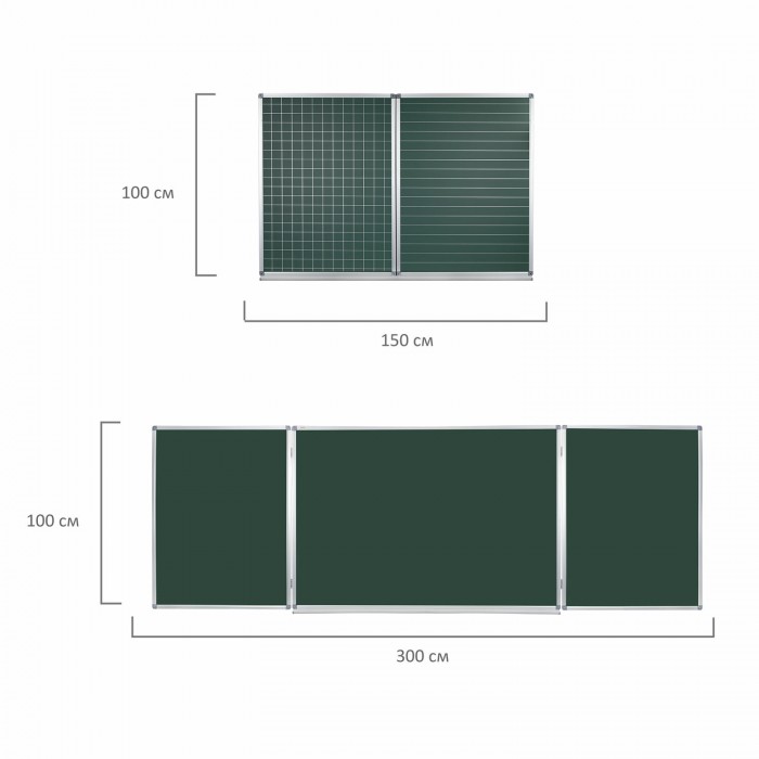 Доска для мела магнитная 3-х элементная 100х150/300 см, ДОПОЛНИТЕЛЬНАЯ ЛИНИЯ/КЛЕТКА, зеленая, STAFF, 238011