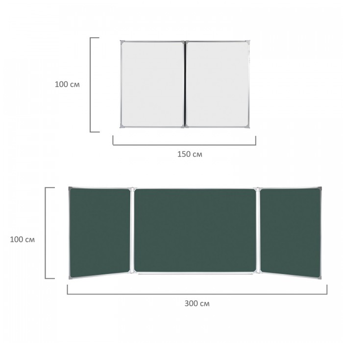 Доска для мела/магнитно-маркерная 3-х элементная 100х150/300 см, 3 поверхности/мел + 2 поверхности/маркер, BS, ТЭ-300К