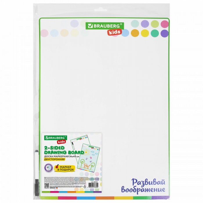 Маркерная доска BRAUBERG KIDS для письма и рисования. Идеально подходит для развития и обучения ребенка.