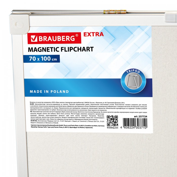 Доска-флипчарт магнитно-маркерная 70х100 см, на треноге, Польша, BRAUBERG Extra, 237724