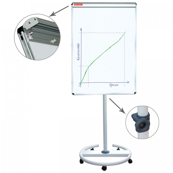 Доска-флипчарт магнитно-маркерная 70х100 см, передвижная, ГАРАНТИЯ 10 ЛЕТ, BRAUBERG, 231703