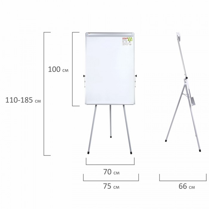 Доска-флипчарт магнитно-маркерная 70х100 см, тренога, регулируемая высота, STAFF, 238002