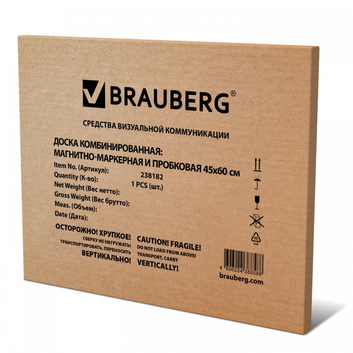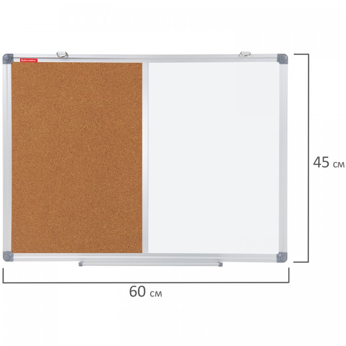 Доска комбинированная: магнитно-маркерная, пробковая для объявлений 45х60 см, BRAUBERG Extra, 238182