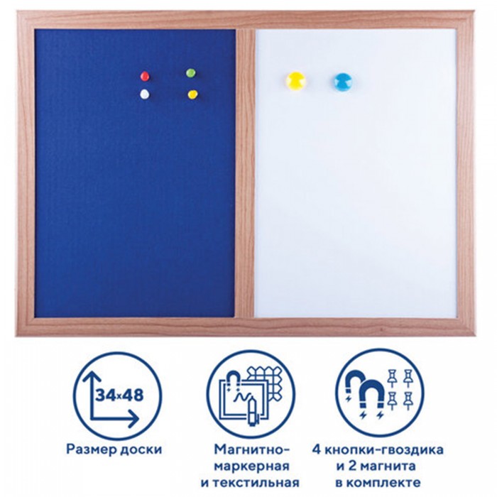 Доска комбинированная: магнитно-маркерная, текстильная для объявлений А3, 342х484 мм, BRAUBERG, 231995