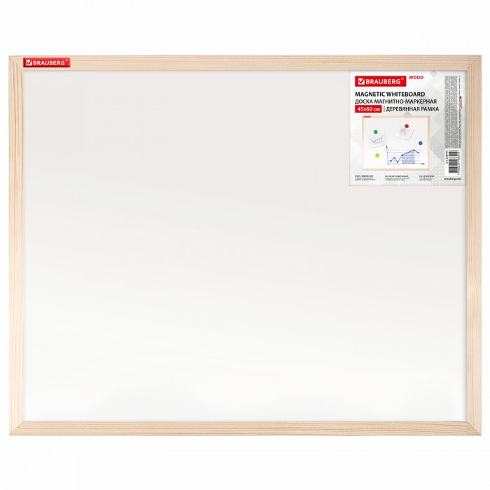 Доска магнитно-маркерная 45х60 см, деревянная рамка, BRAUBERG Standard, 238794
