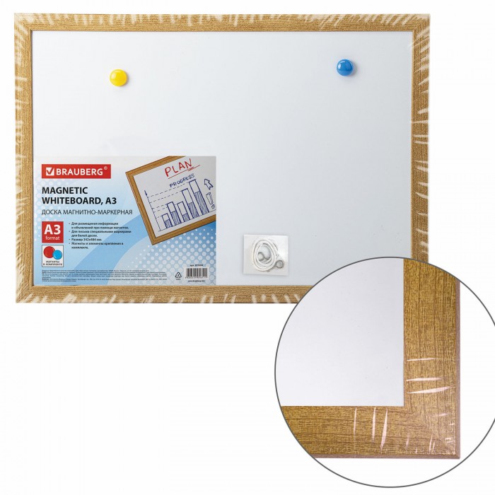 Доска магнитно-маркерная А3, 342х484 мм, ГАРАНТИЯ 10 ЛЕТ, BRAUBERG, 231994